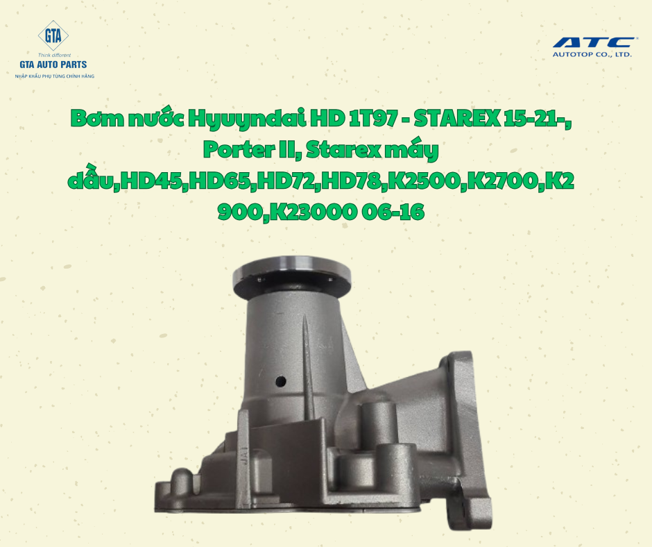 Bơm nước Hyuyndai HD 1T97 - STAREX 15-21-, Porter II, Starex máy dầu, HD45, HD65, HD72, HD78, K2500, K2700, K2900, K23000 06-16(Auto Top)