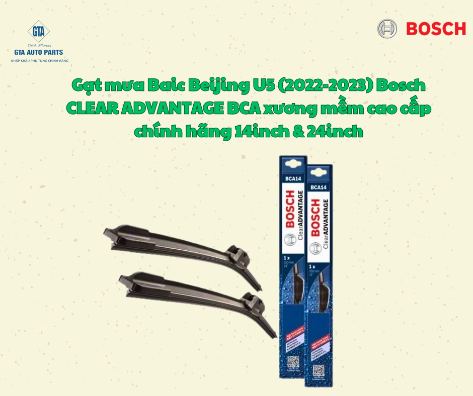 Gạt mưa Baic Beijing U5 (2022-2023) Bosch CLEAR ADVANTAGE BCA xương mềm cao cấp chính hãng 14inch & 24inch