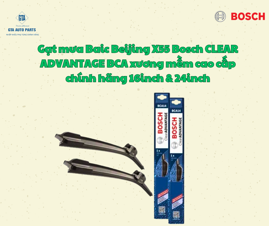 Gạt mưa Baic Beijing X55 Bosch CLEAR ADVANTAGE BCA xương mềm cao cấp chính hãng 16inch & 24inch