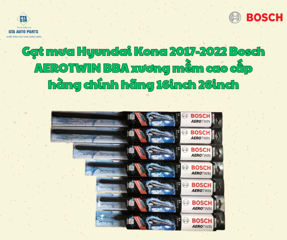 Gạt mưa Hyundai Kona 2017-2022 Bosch AEROTWIN BBA xương mềm cao cấp hàng chính hãng 16inch 26inch