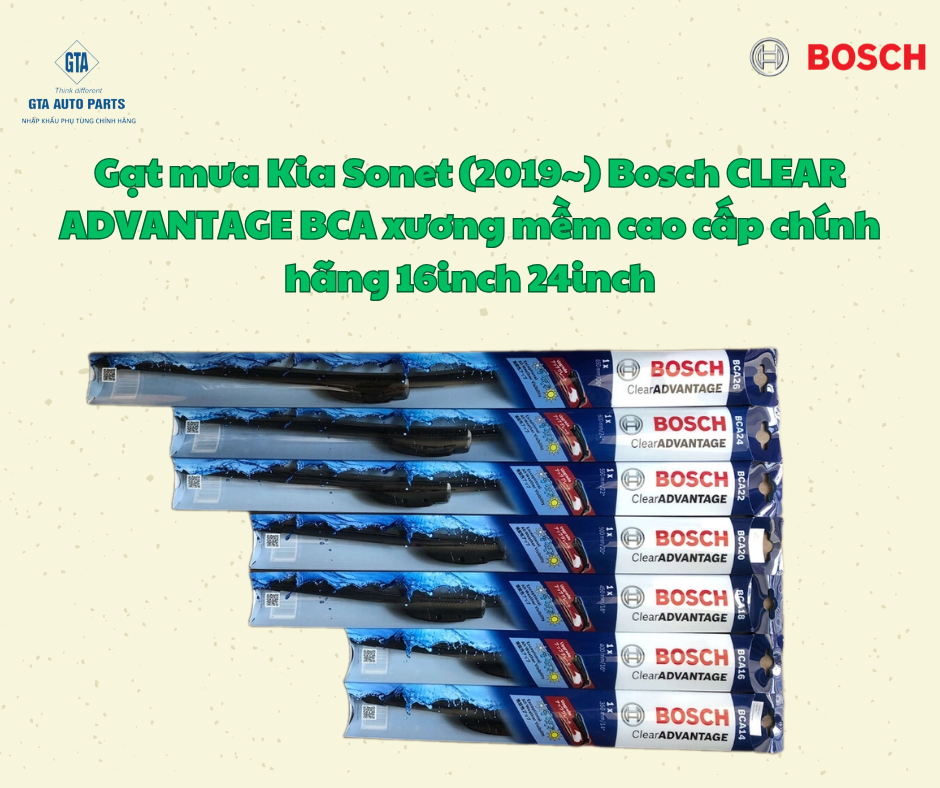 Gạt mưa Kia Sonet (2019~) Bosch CLEAR ADVANTAGE BCA xương mềm cao cấp chính hãng 16inch 24inch
