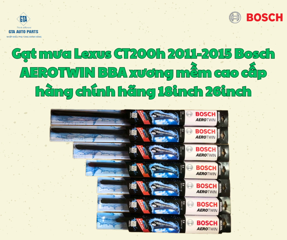 Gạt mưa Lexus CT200h 2011-2015 Bosch AEROTWIN BBA xương mềm cao cấp hàng chính hãng 18inch 26inch