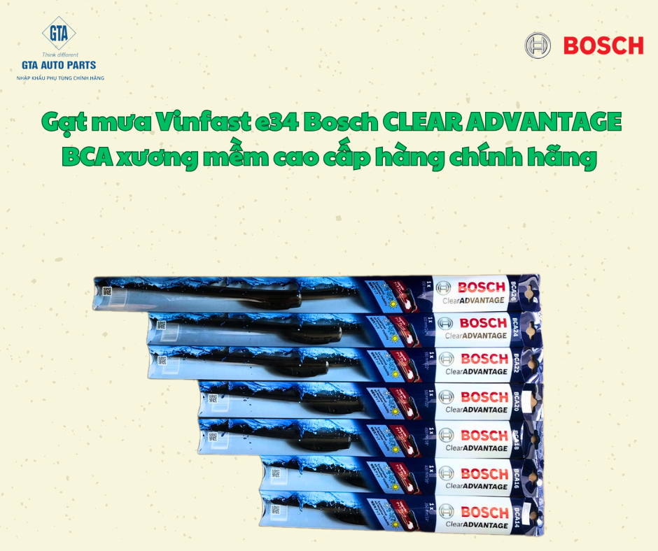 Gạt mưa Vinfast e34 Bosch CLEAR ADVANTAGE BCA xương mềm cao cấp hàng chính hãng